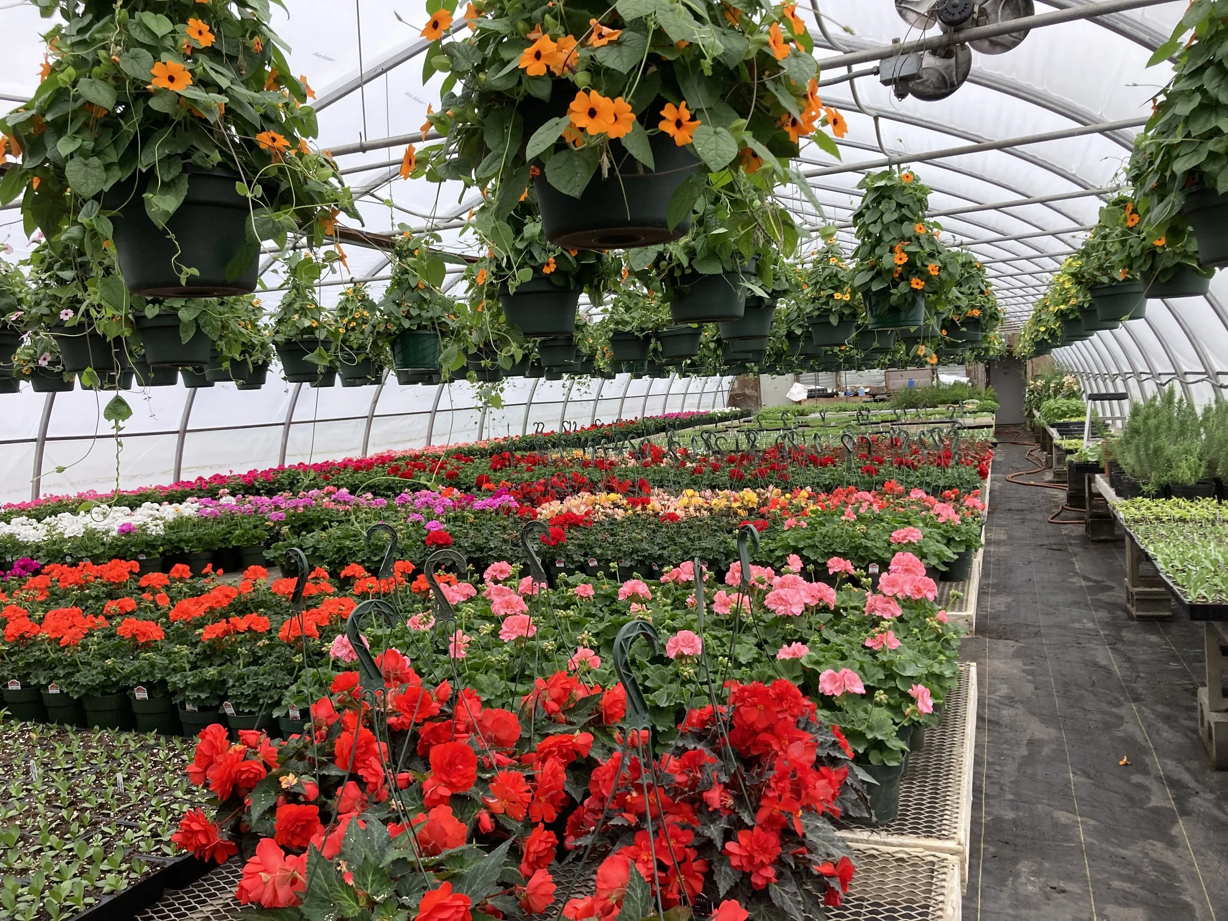 We have five greenhouses loaded with an array of annuals, perennials and vegetable starts. Retail and wholesale customers welcome.